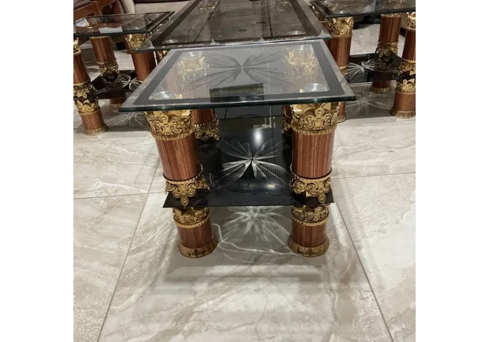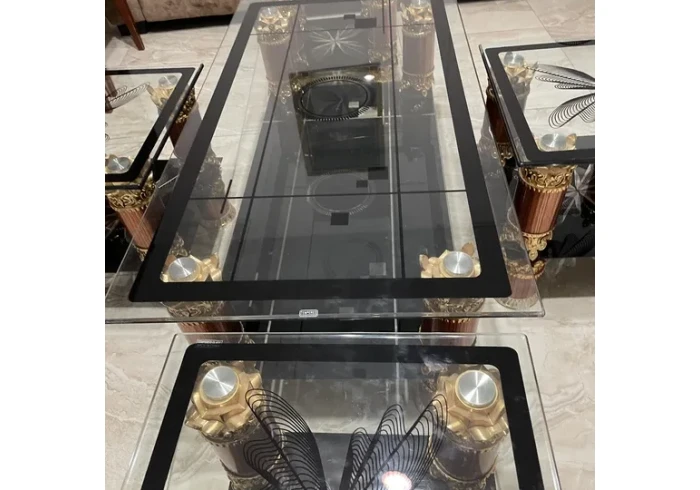 طاولة كبيره وسط و 4 طاولات صغار جنبها ..