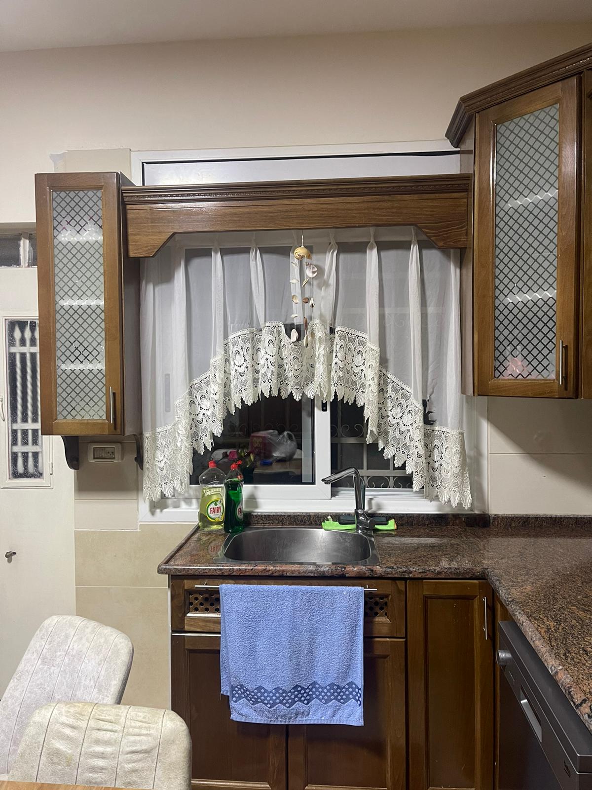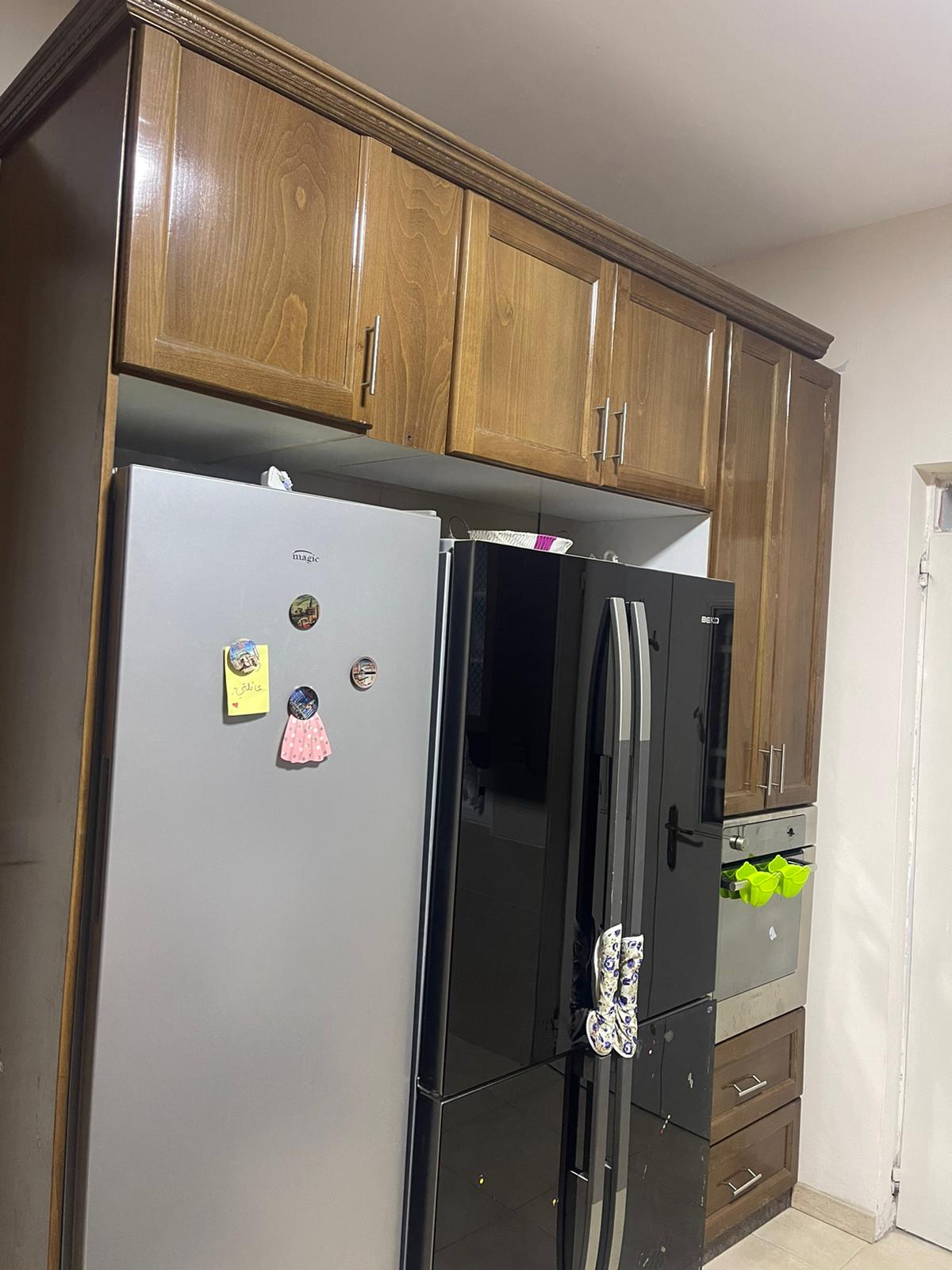 مطبخ كامل خشب بلوط بحاله جيده جداً + غاز بلاطه 4 عيون + شفاط