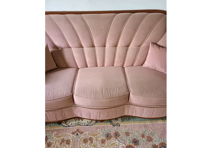 طقم كنب لون زهري بحالة ممتازة جدا وحالته كالاتي