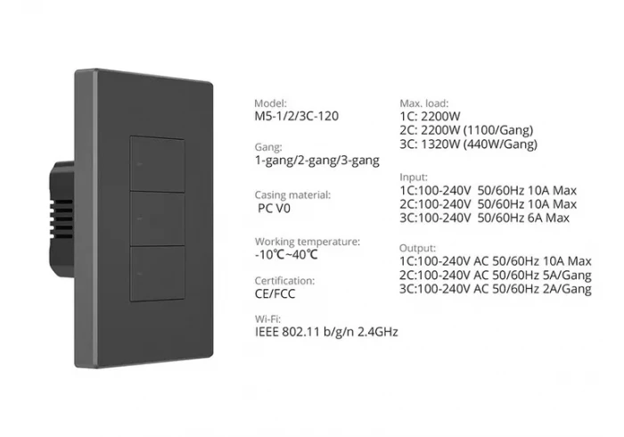 SONOFF SwitchMan M5 هو مفتاح ميكانيكي ذكي متوفر في قناة 1/2/3، يدعم الزر المحلي والتطبيق والتحكم الصوتي. من خلال تطبيق eWeLink، يمكنك إدارة الأجهزة في أي وقت، ولا تقلق بشأن نسيان إيقاف تشغيل الأجهزة الكهربائية عند الخروج.