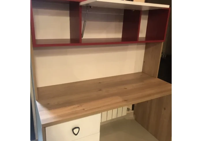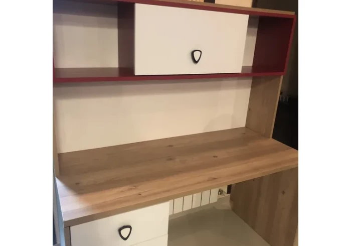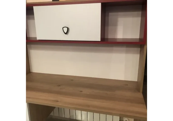 مكتبة خشبية باللون الاحمر والابيض مستعملة شبه جديدة
