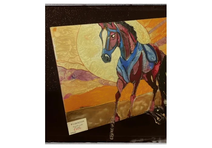 ((اللوحة تم رسمها على لوح زجاجي باستخدام الوان الزجاج ))