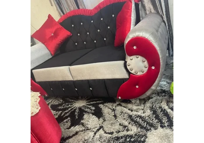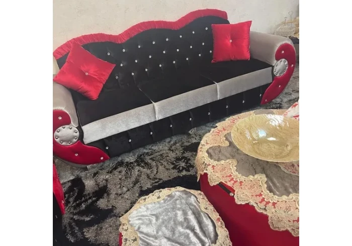 كنب صالون 9 مقاعد بحالة ممتازة شبه جديد معاه طاولة وسكملتين