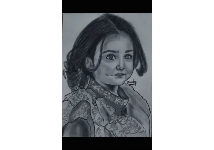 رسم يدوي بورتريه بالفحم و الرصاص بدقة عالية الجودة على ورق كانسون حجم 30*40 سم