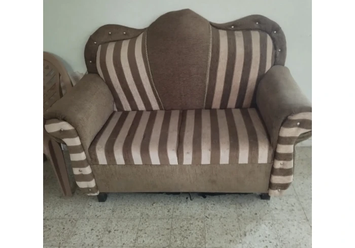 طقم كنب مستعمل بحاله جيدا جدا للبيع عباره عن مقعد ثلاثي ومقعدين ثنائي ومقعدين فرادي بسعر ممتاز