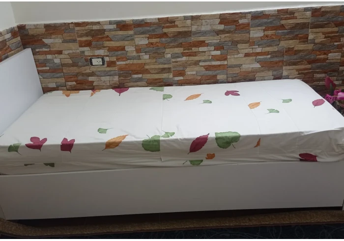 تخت ابيض مفرد شبه جديد مع فرشته طوله مترين وارتفاعه عن الارض 40سم وعرضه 85سم بسعر 600شيكل