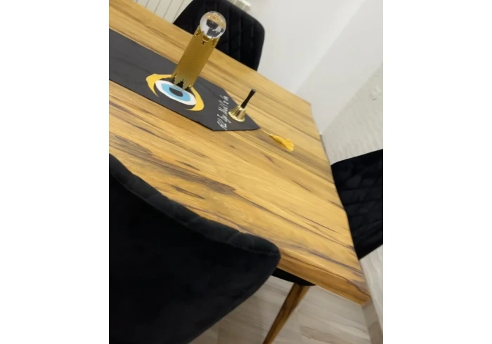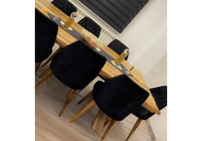 خشب جوز افريقي مع كراسي لون اسود مستعمل بحالة الجديد