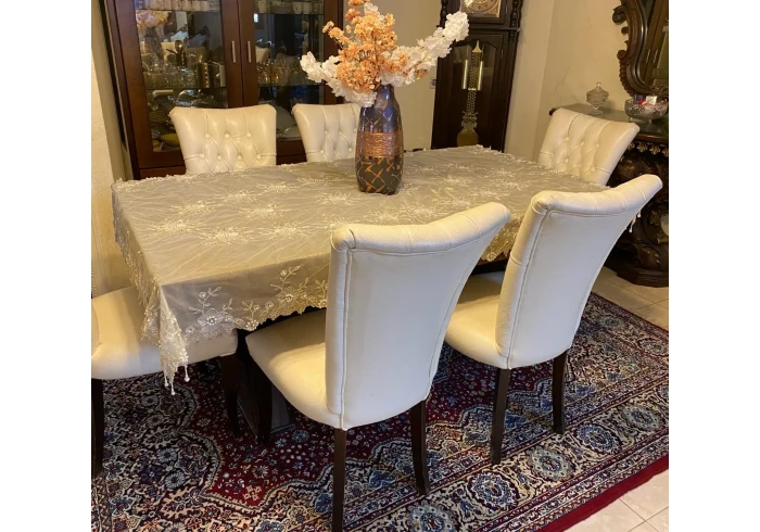 طاولة سفره مع شيفونيره و 6 كراسي جلد
