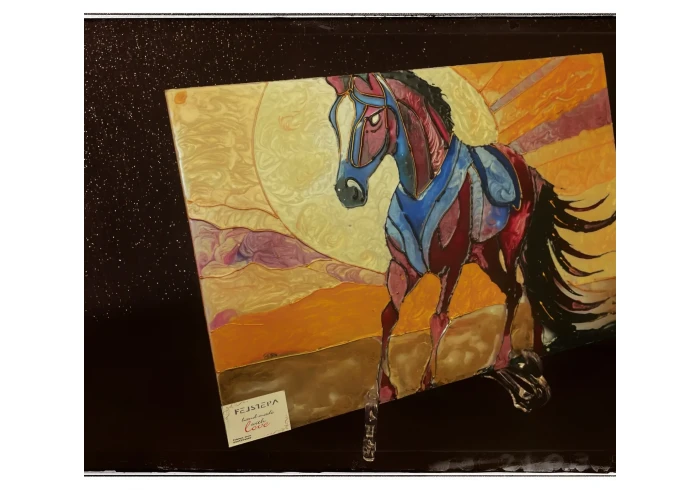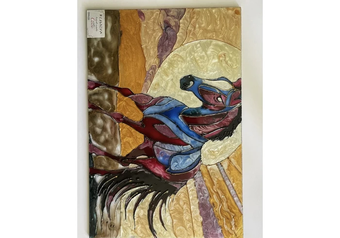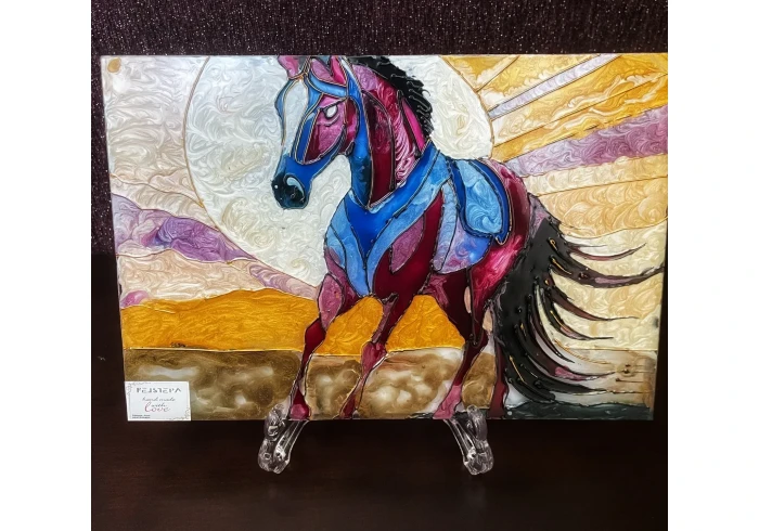 ((اللوحة تم رسمها على لوح زجاجي باستخدام الوان الزجاج ))