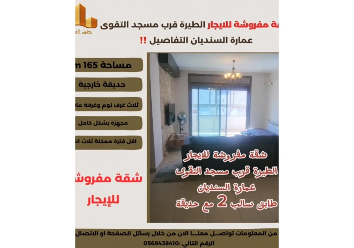 شقة مفروشة للايجار الطيرة قرب مسجد التقوى عمارة السنديان