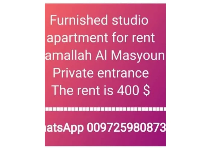 | عنوان الشقة | : رام الله والبيرة-الماصيون |