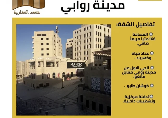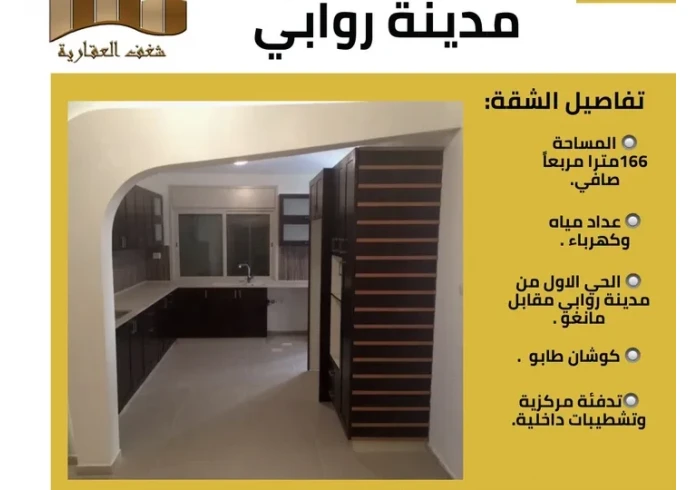 شقة بمدينة روابي 186 متر مع امكانية دفع نص بنص لسنتين