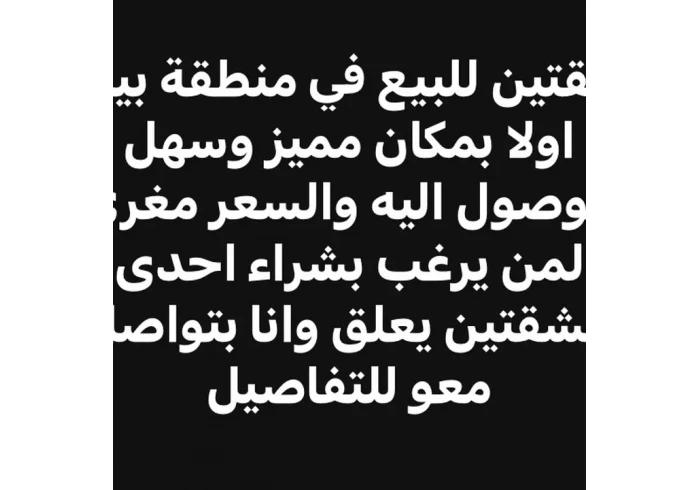 شقتين للبيع بسعر مغري جدا الموقع الشارع الرئيسي يسهل الوصل اليها مزيد من التفاصيل
