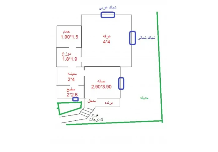 تتكون من برنده وصاله ومعيشه وغرفة كبيره ومطبخ وحمام