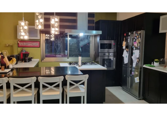 طابقين، مع موقف سيارة بالإضافة لمواقف للزوار. حديقة مع منطقة شواء، تراس كبير، حمامات واسعة. يفضل البيع مع الأثاث.