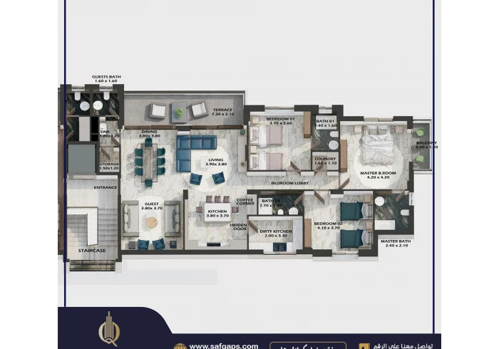 تحتوي على مخزن وغرفة غسيل داخل الشقة.