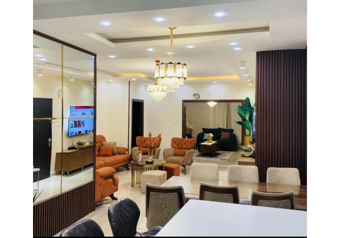 صالون منفرد وصالة مفتوحة على المطبخ وبرندتين