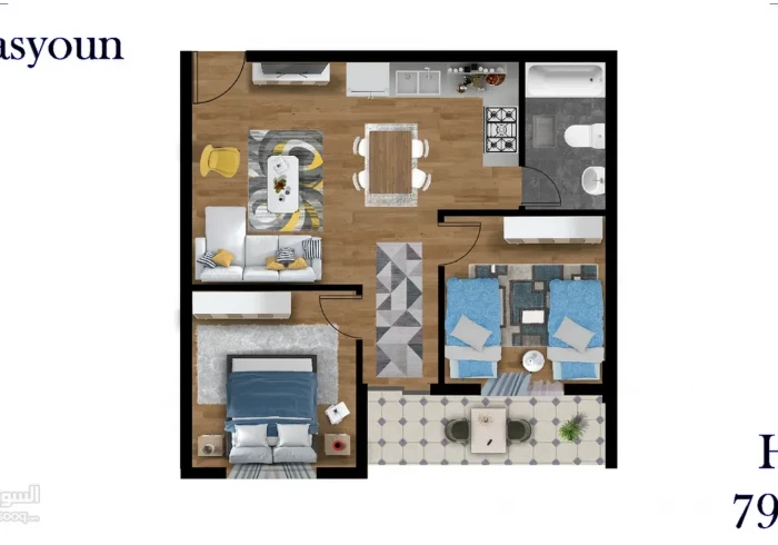 استوديو مكون من غرفتين نوم للبيع بموقع مميز جدا