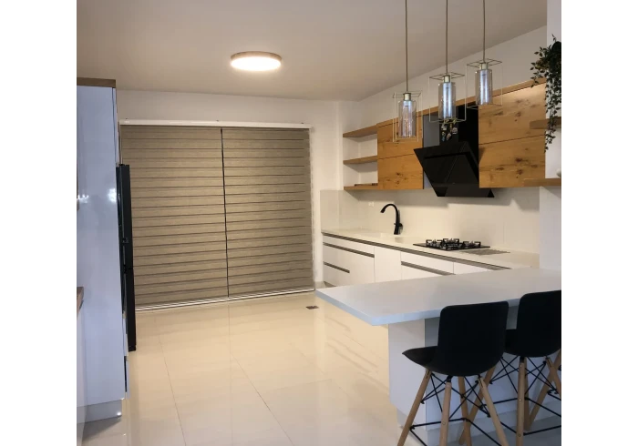 المساحة 170م\ 3 غرف نوم \ 3 حمامات \ صالة \ مطبخ \ برندة \ تدفئة مركزية