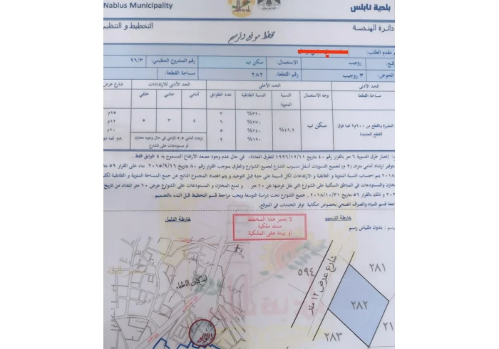 أرض مميزة جداً مساحتها 773 طابو نابلس نظيف للبيع للجادين روجيب إسكان الموظفين على شارع مزفت بعرض 12م