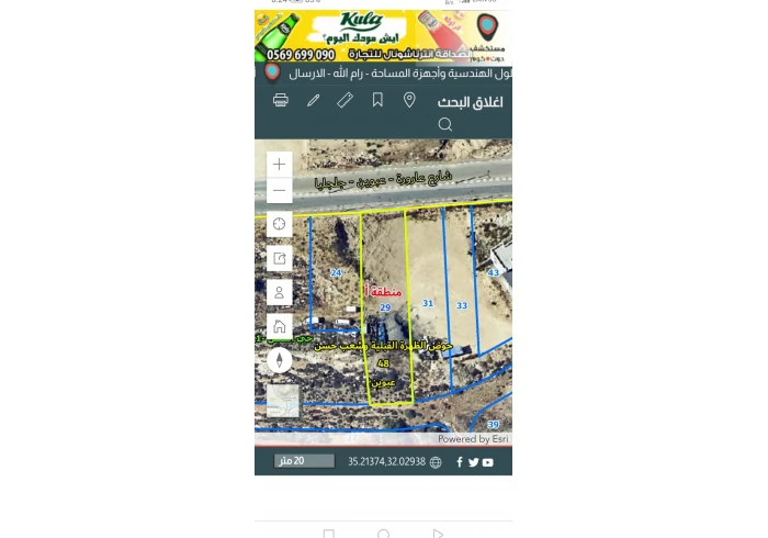 أرض للبيع في قرية عبوين رقم 29 حوض 48 الظهر القبلية شعب حسن تقع على شارع عارورة عبوين جلجليا