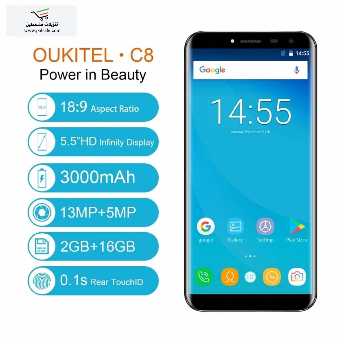 Oukitel c8 جديد بالكرتونة يوجد جهازين واحد لون اسود والثاني لون روز