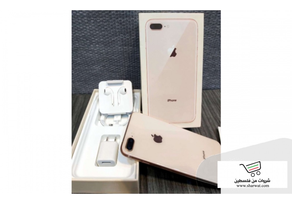 ايفون ٨ بلص ابيض أمريكي غير مفتوح شرائح كرتونه الجهاز جديد.