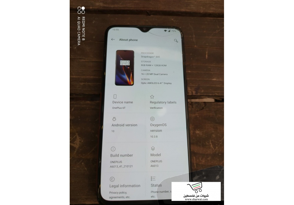 جهاز OnePlus 6t نسخة ال 8 جيجا رام وذاكرة 128 جيجا