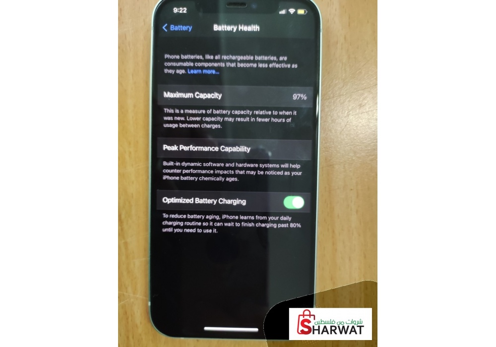جهاز ايفون 12 شبه جديد لون اخضر فاتح 128 جيجا ولا نقرة بطارية 97% شريحة فعلية وشريحة الكترونية مع كفر otterbox اصلي شفاف
