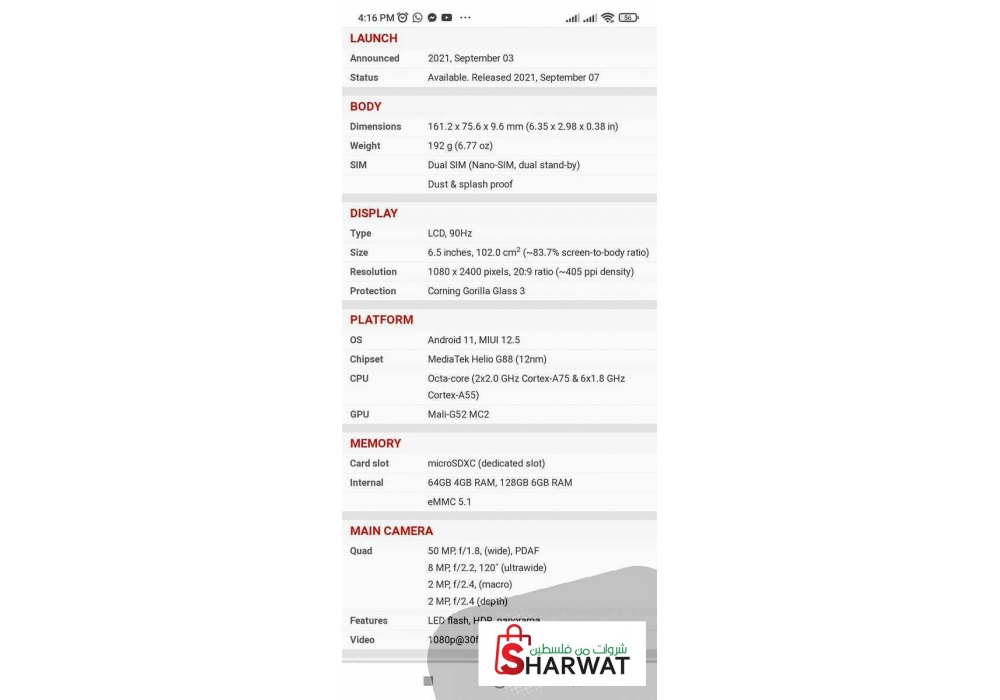 شومي Xiaomi الجديد من شاومي Redmi 10 prime السعر فقط 660 شيكل - جديد -