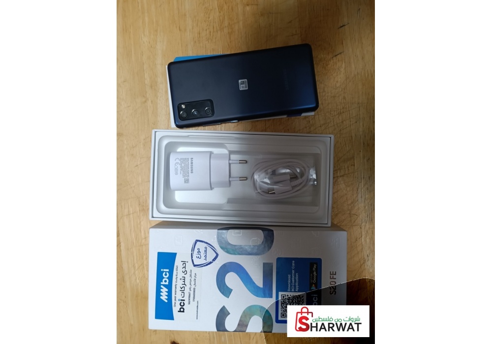 جهاز سامسونغ s20 fe Snapdragon 865 شبه جديد لون كحلي 8 رام وذاكرة تخزين 128جيجا ضد المياه والغبار شحن لاسلكي وميزة تسجيل المكالمات من نفس النظام جهاز صاروخ للالعاب كفالة bci شغالة مع الكرتونة وشاحن 25وات اصلي سامسونغ شريحتين