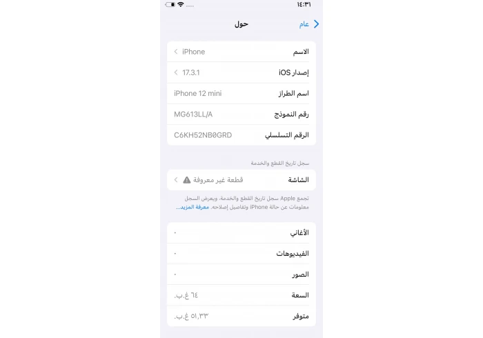 ايفون 12 ميني بطاريه 96 يعمل بالشريحه الاكترونيه مغير شاشه ولكن منقوله من جهاز اصلي iphone 12 mini